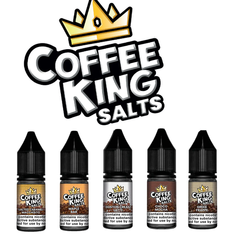 Coffee King Salts are an eliquid that is manufactured in the UK by the brand Coil Benders. With 4 Coffee variants, Coffee King is sure to satisfy your pallet. Available in 10ml Salts 10mg/20mg
