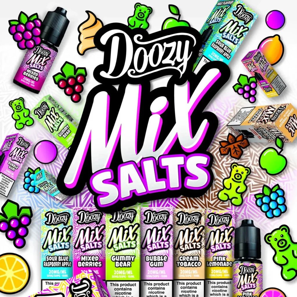 Doozy Mix Salts Nic Salt E-liquid is available in a 10ml bottle. The VG/PG Percentage Ratio is 50%VG/50%PG and is available in 5mg, 10mg and 20mg Nicotine strength. We use pharmaceutical grade Nicotine which delivers a smooth hit of nicotine, combined with our super tasty flavours delivers an immensely satisfying vape.