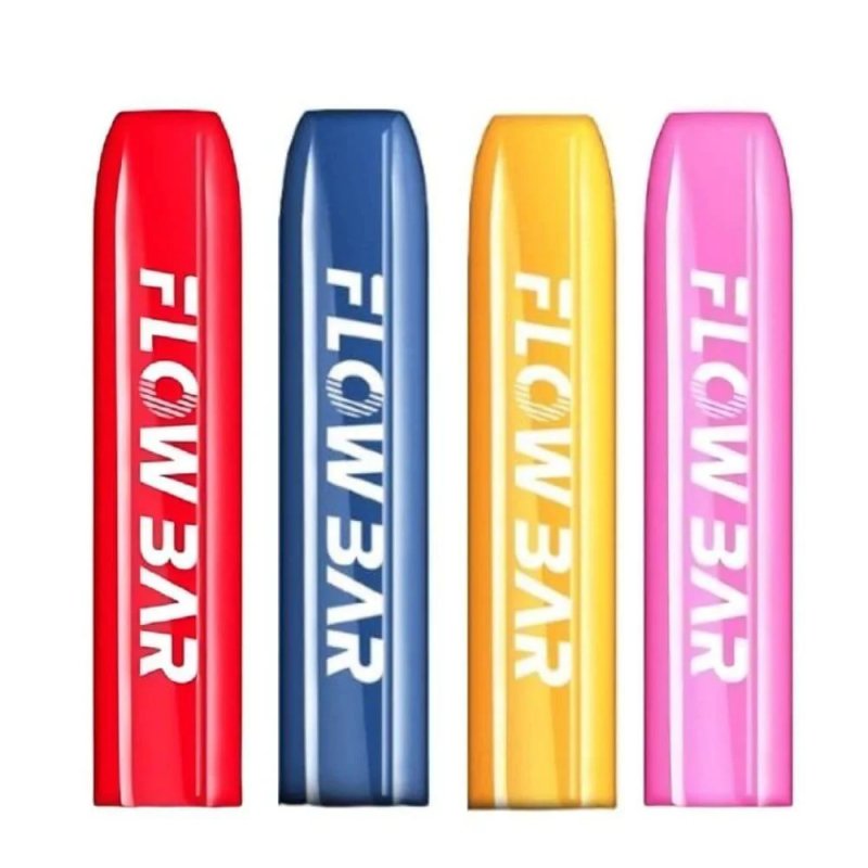 he Flow Bar 600 disposable e-cigarette comes in a range of sweet flavors and has a 20mg Nic salt, which is enough nicotine for most needs. Up to 600 of vapor can be powered by the battery. Vaping requires no special equipment or setup. Without pressing any buttons, just draw on the device, and the inbuilt coil will automatically turn on and produce vapor. The device has a trendy look and feel thanks to its exquisite design, which matches the outside color of each flavor.