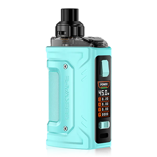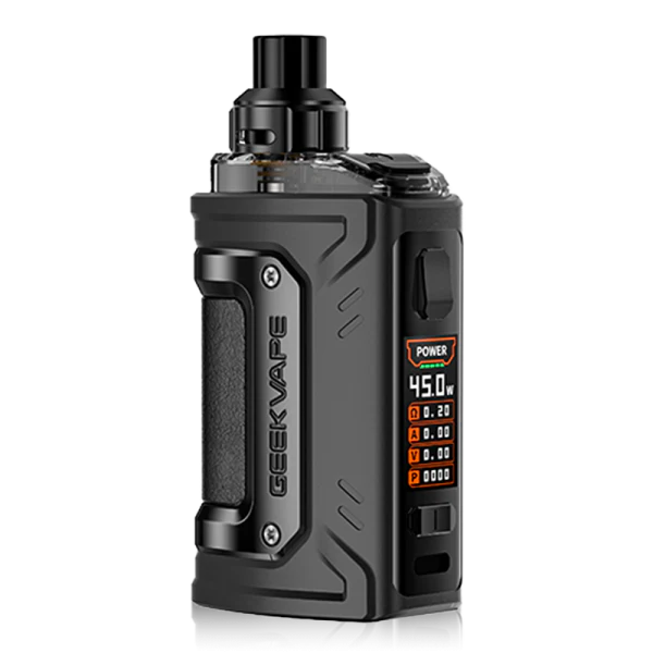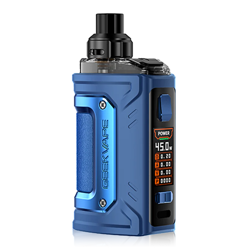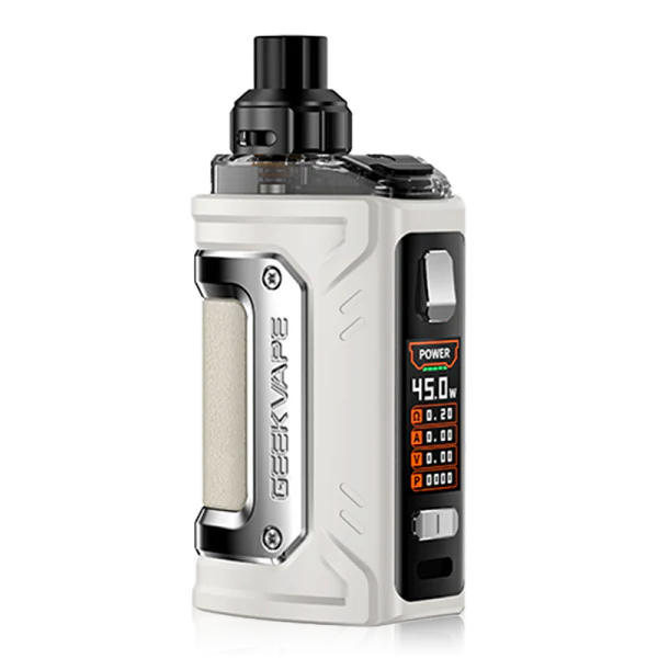 Geekvape H45 Classic Pod System Kit, featuring a 5-45W output, Hero 2 Pod compatibility, and utilizes the Geek Vape B Coils.