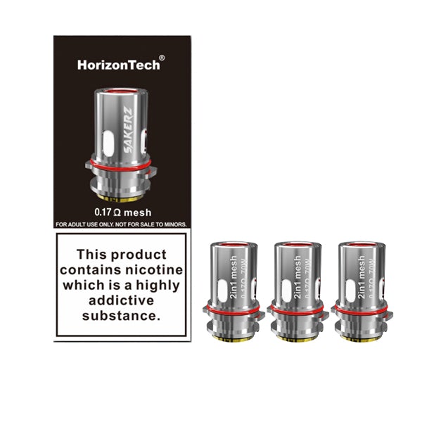 '- Horizon Sakerz 2in1 Mesh Coils- Resistance: 0.17Ohms- Power: 70W- Pack of 3