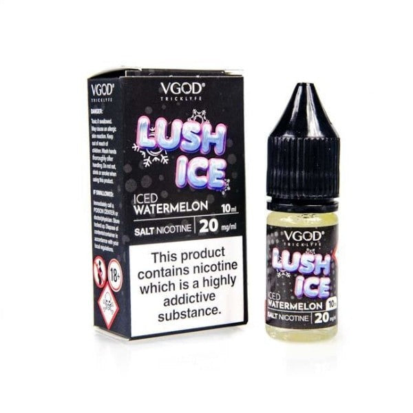 Lush Ice: the signature watermelon candy flavour climaxing with a fresh breeze of menthol elevated with SaltNic, in 20mg that will bring your favourite low wattage device to life.