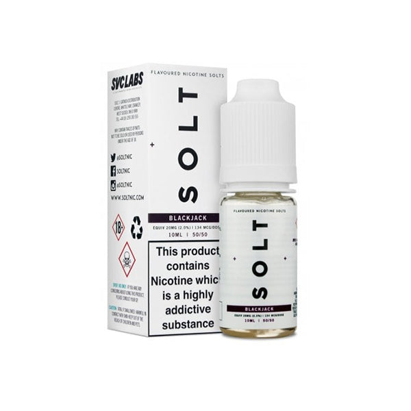 BlackJack: Inspired by the famous sweet, SOLT Blackjack is packed with the inimitable taste of aniseed and liquorice. Blackjack e-liquid by SOLT is layered with dark berries for a deliciously fruity twist on the classic liquorice flavour