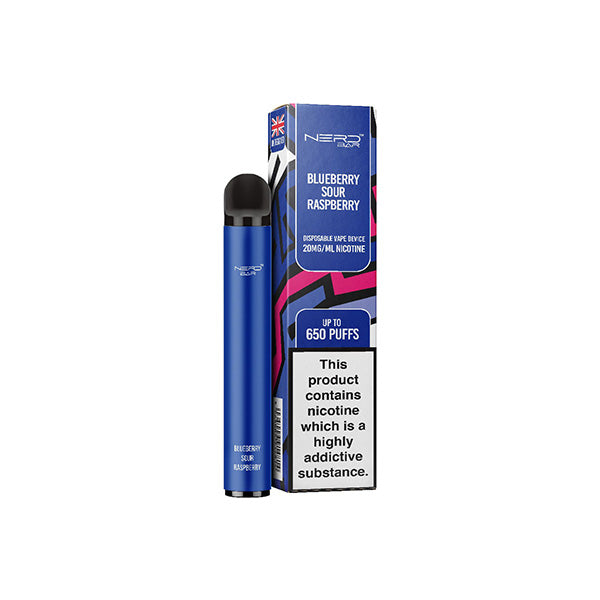 The Nerd Bars are all pre-filled with 2ml of nicotine salt e-liquid that through simply puffing at the top, allows you to inhale and experience the delight flavours of your choosing. Each Nerd Bar will last up to around 650 puffs due the built-in 550mAh battery that is sure to provide an all day long vaping experience with each puff having 66mcg of nicotine. Once depleted, you can simply get rid of it after use as there is no need for a re-fill or to recharge it.