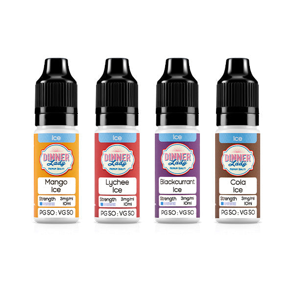 Blending varying, succulent fruity notes with icy cool koolada aftertastes, these Dinner Lady 50:50 Ice range of freebase e-liquids...