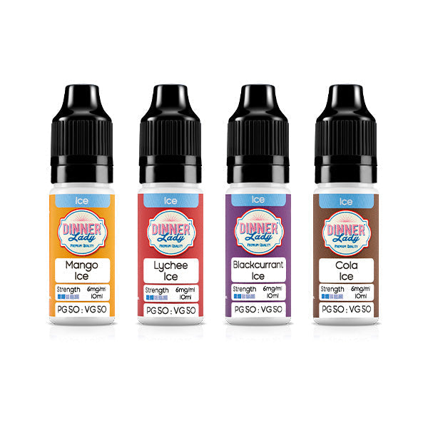 Blending varying, succulent fruity notes with icy cool koolada aftertastes, these Dinner Lady 50:50 Ice range of freebase...