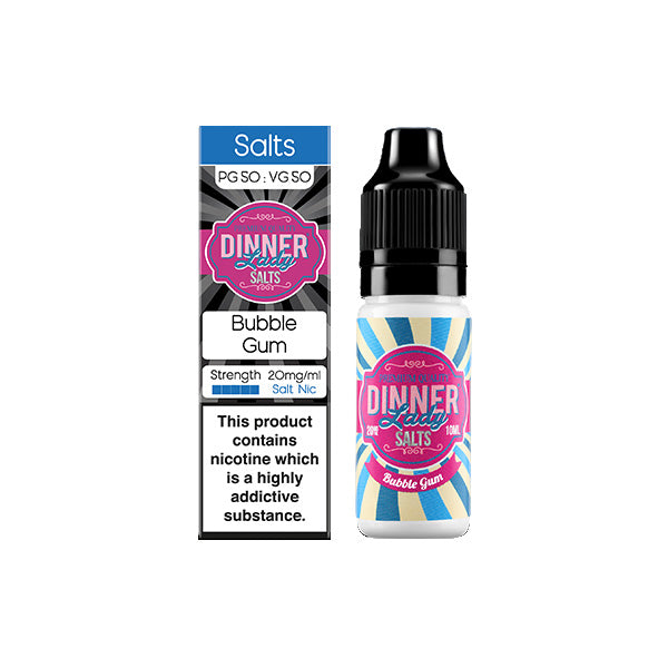 By recreating your fond favourite candies from times gone by, these Dinner Lady Sweets Salts will bring childhood nostalgia to your taste buds. You'll enjoy a realistic smoking sensation with high flavoured intensity and a long lasting hit at 20mg nicotine strength.