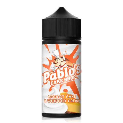 Carrot Cake & Whipped Cream - Head to Pablos Cake Shop for the freshest shortfill e-liquids around! We've got Carrot Cake, topped with a dollop of creamy-dreamy whipped cream, so good your mouth will be watering! Delicious dessert dreams without the calories-- perfect!