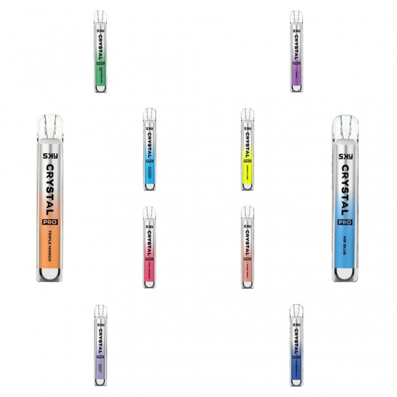 Introducing the Sky Crystal Pro 600 Puffs 20mg Disposable Vape a compact powerhouse designed for enthusiasts seeking a heightened vaping experience. With an ample 600-puff capacity and a 20mg nicotine concentration, this disposable vape ensures a satisfying journey. Sky Crystal Pro 600 Puffs 20mg Disposable Vape available in 25+ different flavors such as Blackcurrant Mango, Blueberry Cherry, Cranberry, Blueberry Ice, Blueberry Sour Raspberry, Gummy Bear, Lemon and Lime, Pink Lemonade, Red Ice, Sakura Grapes, Triple Mango, Vimto, Watermelon Ice, Fizzy Cola, etc.