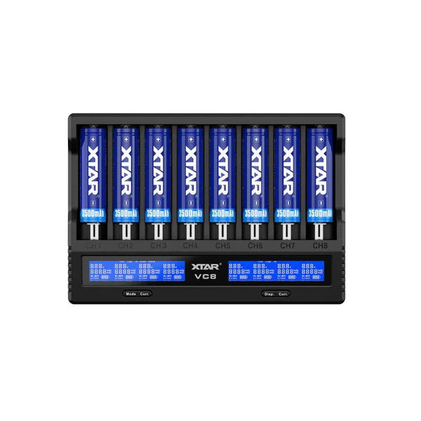 This charger is capable of charging 8 cells at 0.5A, 4 cells at 1A, 2 cells at 2A and 1 cell at 3A. Compatible with the new 20700 & 21700 formats (see below for more compatible formats).